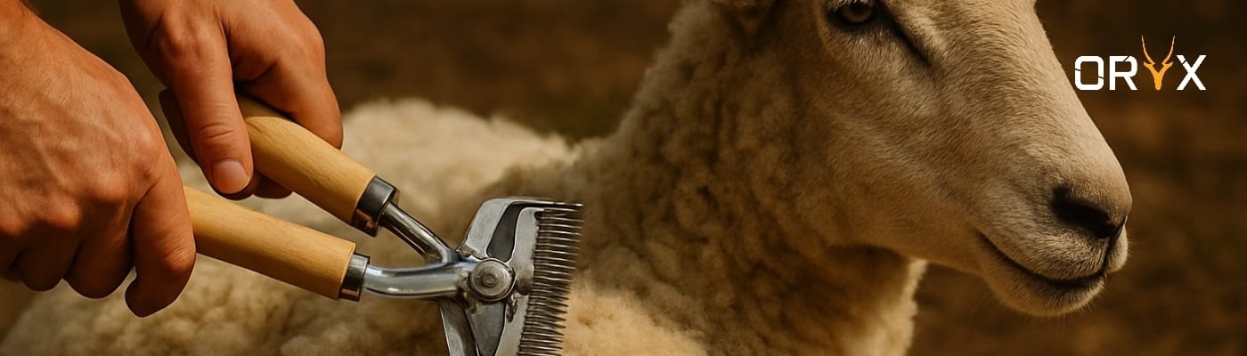 Traditional hand-operated wool clipper for sheep, goats, and other livestock.